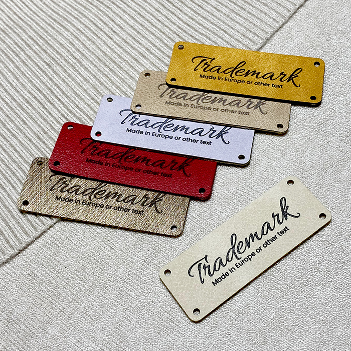 Este Etiqueta de imitación de cuero Model EP-M143 puede personalizarse en tan solo unos segundos, de manera sencilla y rápida utilizando el constructor gráfico, donde puedes elegir el color del cuero de imitación, insertar tu propio logo o cualquier otra imagen con un diseño complejo, y puedes personalizar la etiqueta con tu propio texto, por ejemplo con el nombre de tu marca, un slogan, el nombre del fabricante y el país donde se ha fabricado tu producto.