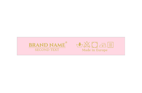 Etiqueta de composición personalizada con signos de lavado y mantenimiento, y la Marca o logo, adecuada para cualquier producto textil, especialmente prendas de vestir. Este modelo de etiqueta textil se fabrica utilizando las tecnologías más avanzadas en el campo de la impresión digital en medios textiles. Las etiquetas están impresas en satén especial, por el método de transferencia térmica, con una calidad de impresión impresionante y alta resistencia al lavado.