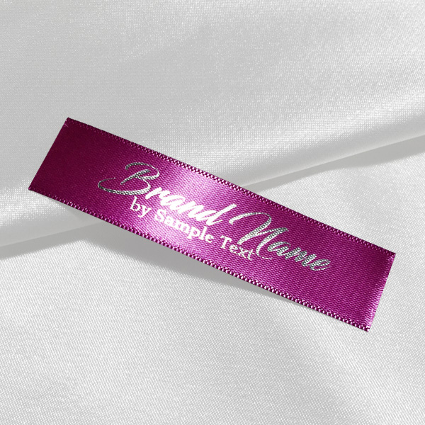 Etiqueta textil impresa con escritura plateada sobre raso modelo Fashion Style, para ropa y prendas varias. Este modelo de etiqueta textil se fabrica utilizando las tecnologías más avanzadas en el campo de la impresión digital en medios textiles. Las etiquetas están impresas en satén especial, por el método de transferencia térmica, con una calidad de impresión impresionante y alta resistencia al lavado.