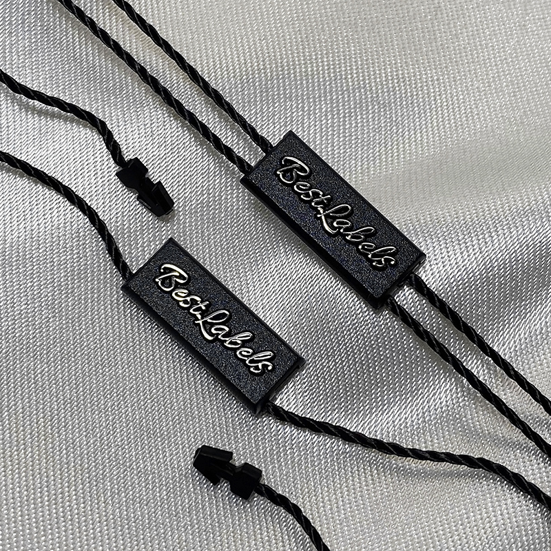 Sello personalizado de etiquetas de plástico ST-M121 para los productos fashion, como ropa, calzado, bolsos, joyas, accesorios, etc.