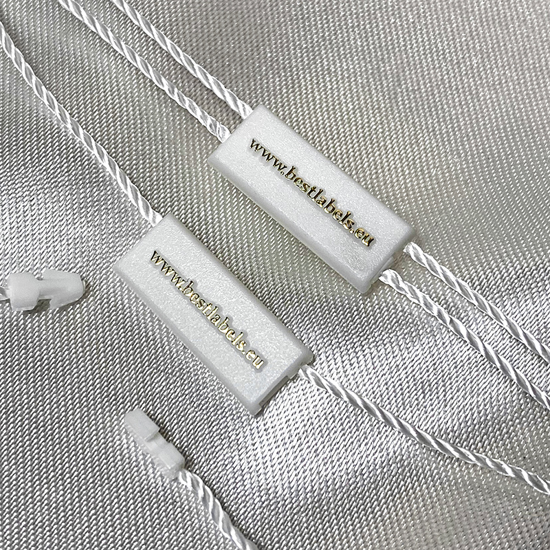 Sello personalizado de etiquetas de plástico ST-M126 para los productos fashion, como ropa, calzado, bolsos, joyas, accesorios, etc.