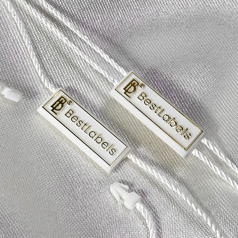 Sello personalizado de etiquetas de plástico ST-M142 para los productos fashion, como ropa, calzado, bolsos, joyas, accesorios, etc.