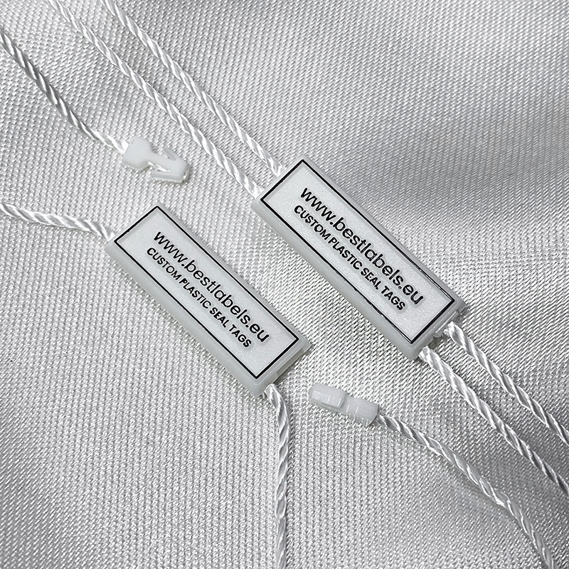 Sello personalizado de etiquetas de plástico ST-M147 para los productos fashion, como ropa, calzado, bolsos, joyas, accesorios, etc.