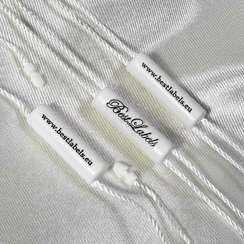 - Materiales: plástico (sello) y poliéster (cordón).