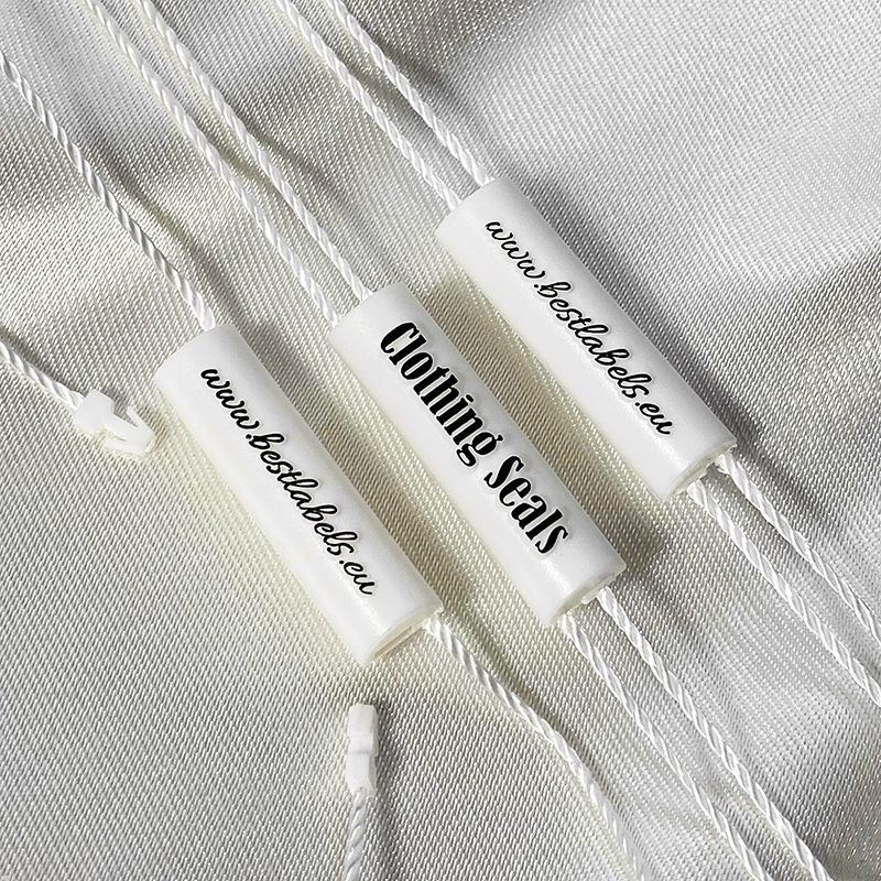 - Materiales: plástico (sello) y poliéster (cordón).