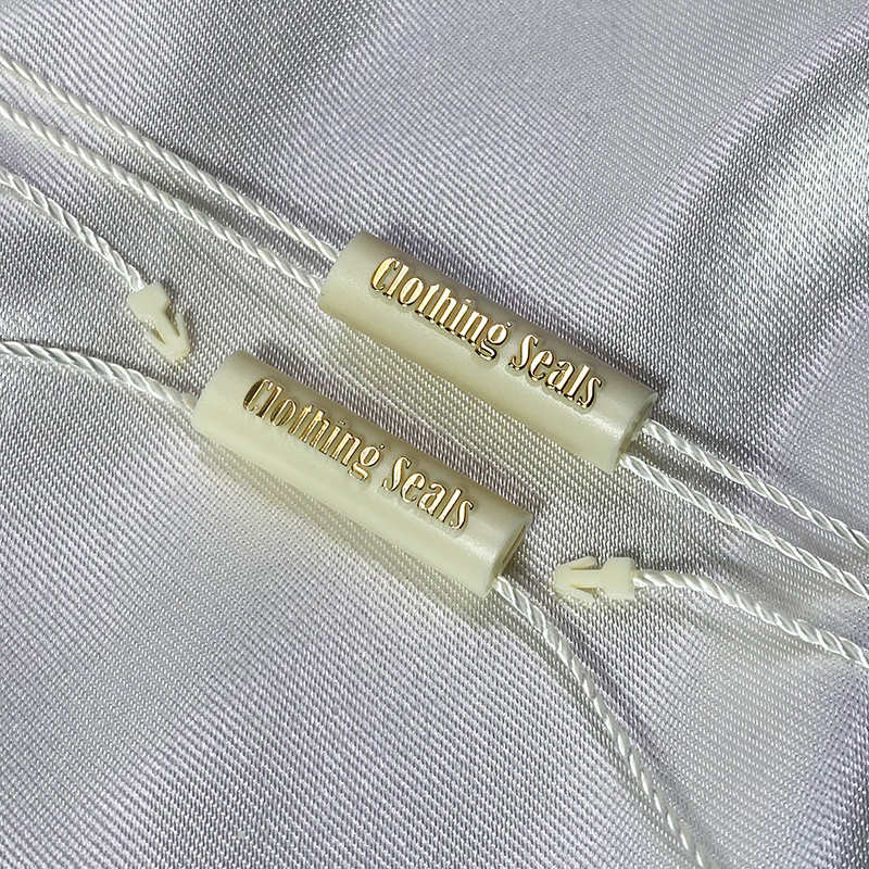 - Materiales: plástico (sello) y poliéster (cordón).