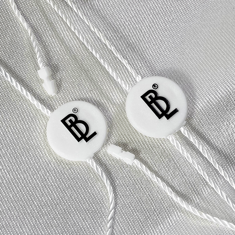 • Materiales: plástico (sello) y poliéster (cordón).