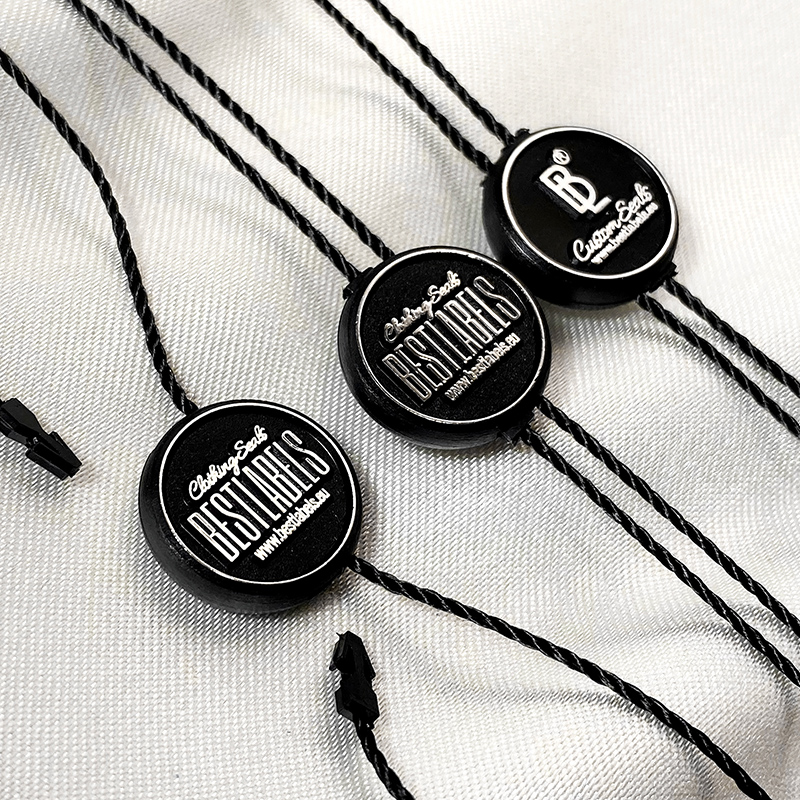 Sello personalizado de etiquetas de plástico ST-M90 para los productos fashion, como ropa, calzado, bolsos, joyas, accesorios, etc.